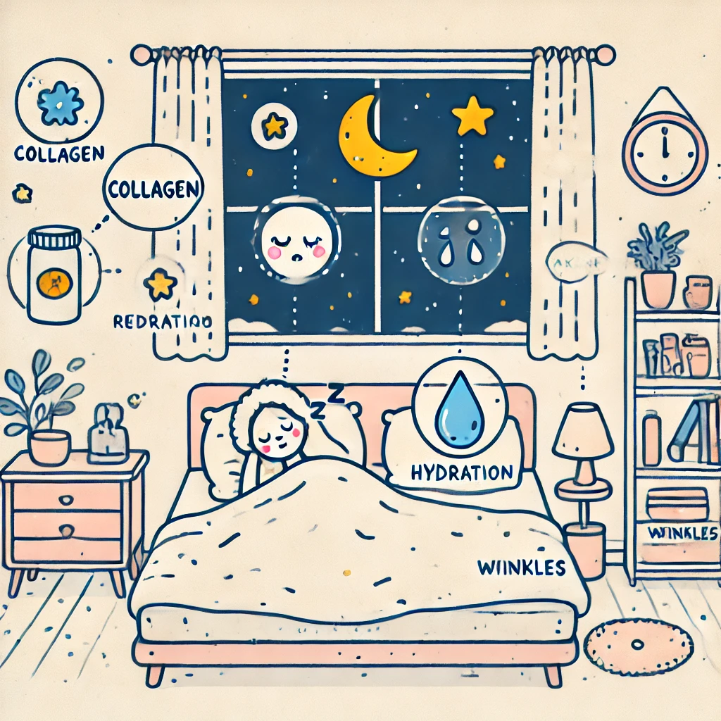 • 睡眠不足によるストレスホルモンの増加が、肌のコラーゲン分解を加速し、シワの形成を促進