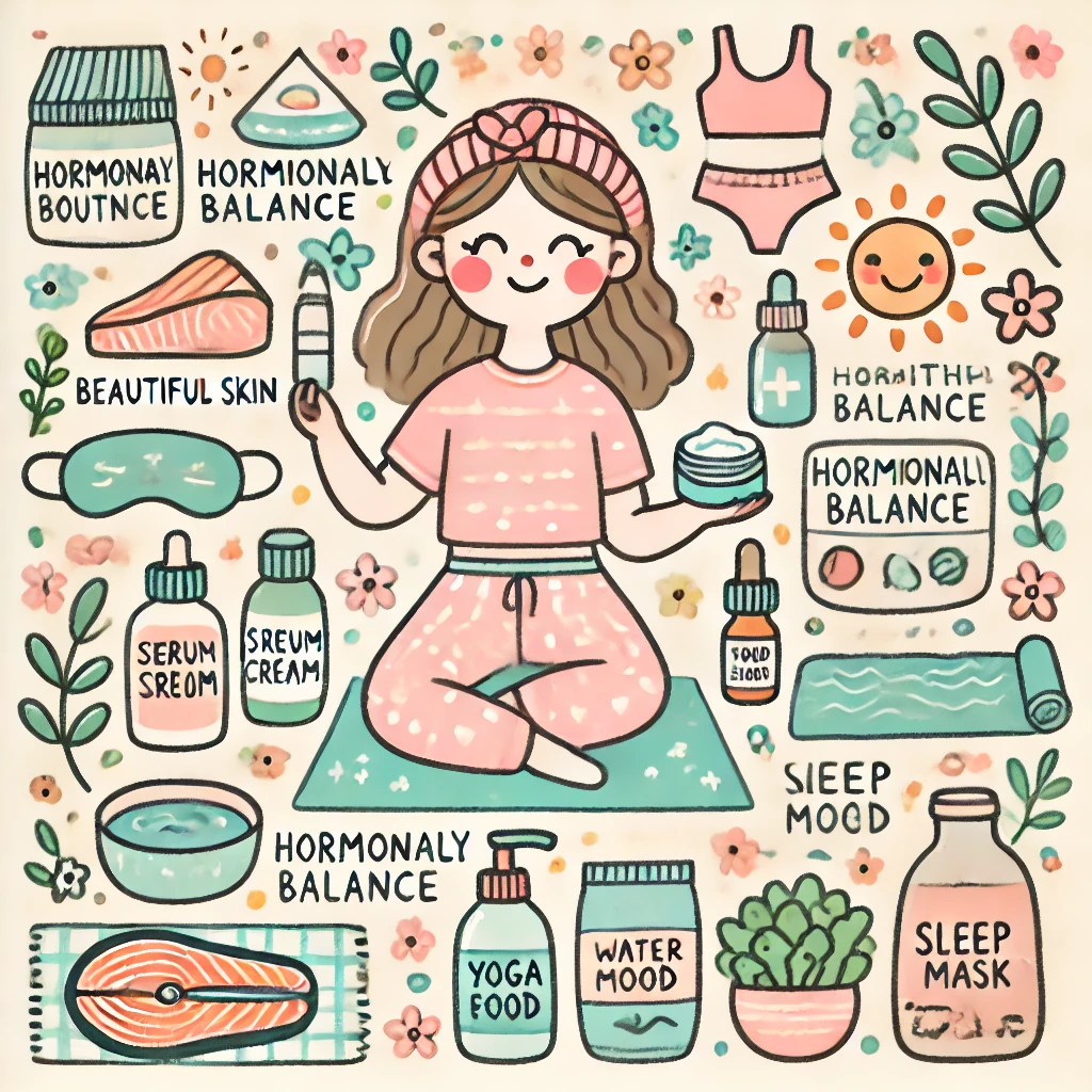 ホルモンバランスを整え、美肌を維持するためには、スキンケアだけでなく、食事、運動、休息、メンタルヘルスなど、生活全般にわたるケアが必要です。これらのポイントを意識し、日々の生活に取り入れていくことで、年齢を重ねても美しく健康的な肌を保つことができるでしょう。