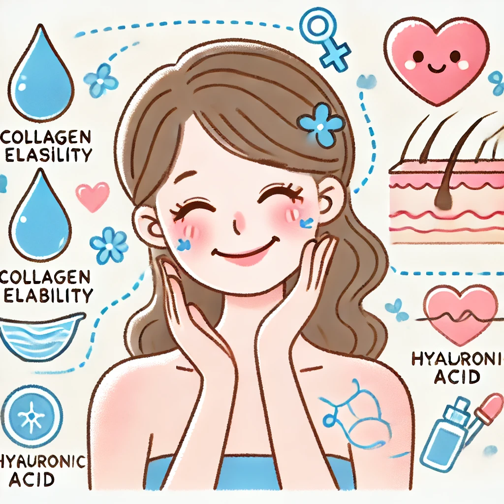 エストロゲンは、肌の水分保持力を高める働きも持っています。具体的には、以下のような効果があります: