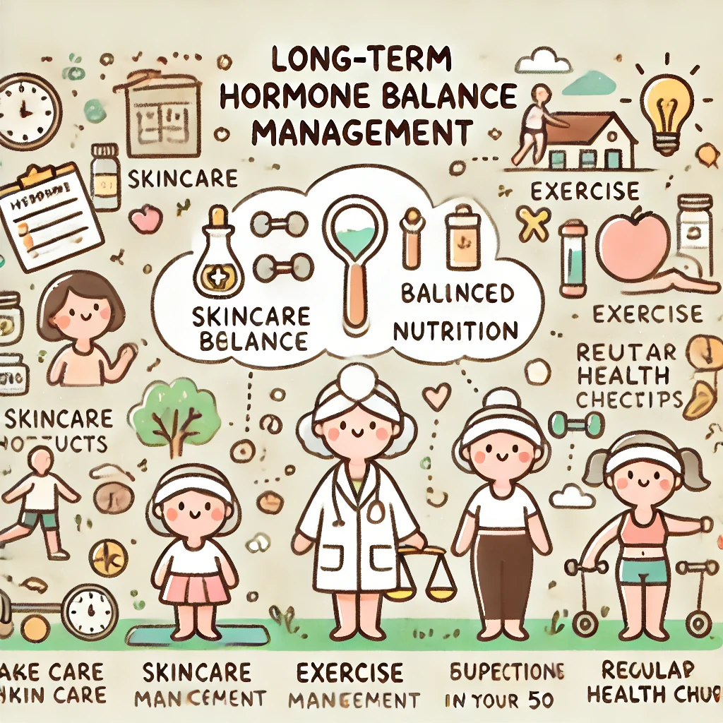 長期的な視点でのホルモンバランス管理も忘れてはいけません。定期的な健康チェックや、年齢による変化に応じたケア方法の調整が必要です。また、ホルモンバランスは全身の健康と密接に関連しているため、総合的な健康管理の一環として捉えることが大切です。