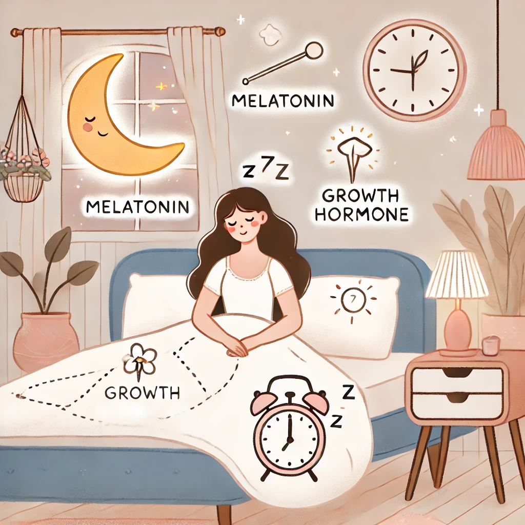 これらの効果により、睡眠の質が向上し、ホルモンバランスが整います。
