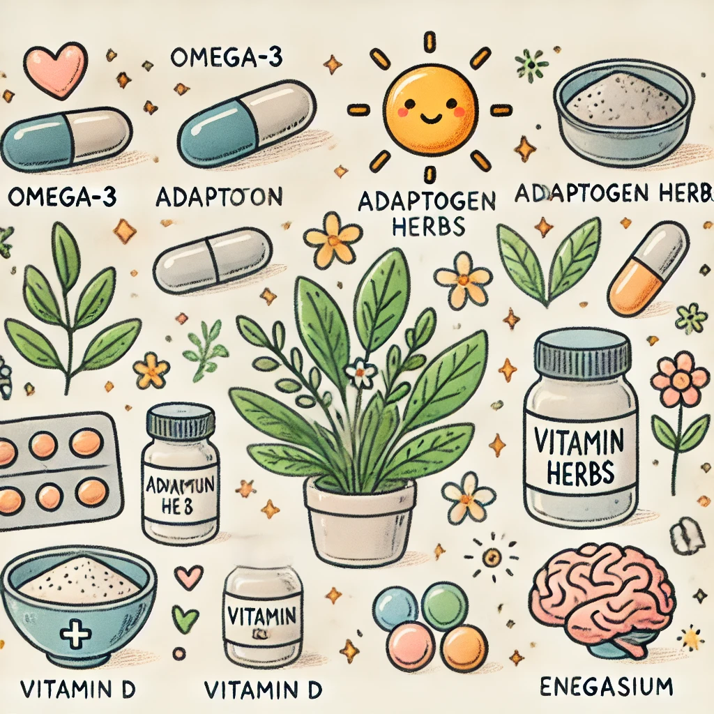 オメガ3脂肪酸、アダプトゲンハーブ、ビタミンD、マグネシウムなどのサプリメントは、それぞれ異なるメカニズムでホルモンバランスの調整をサポートします。しかし、サプリメントの選択や利用には十分な注意が必要です。