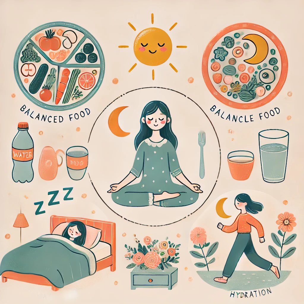 - 適切な水分補給(ホルモンバランスの維持に重要)