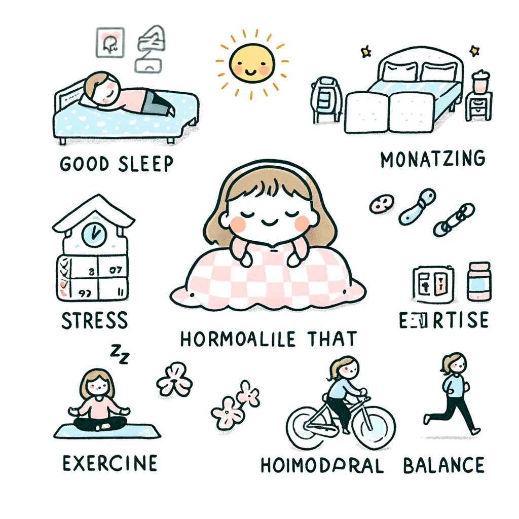 ホルモンバランスを整えるのは、食事やサプリメントだけではありません。日々の生活習慣も大きな影響を与えます。特に、睡眠、ストレス管理、適度な運動は重要な要素です。
