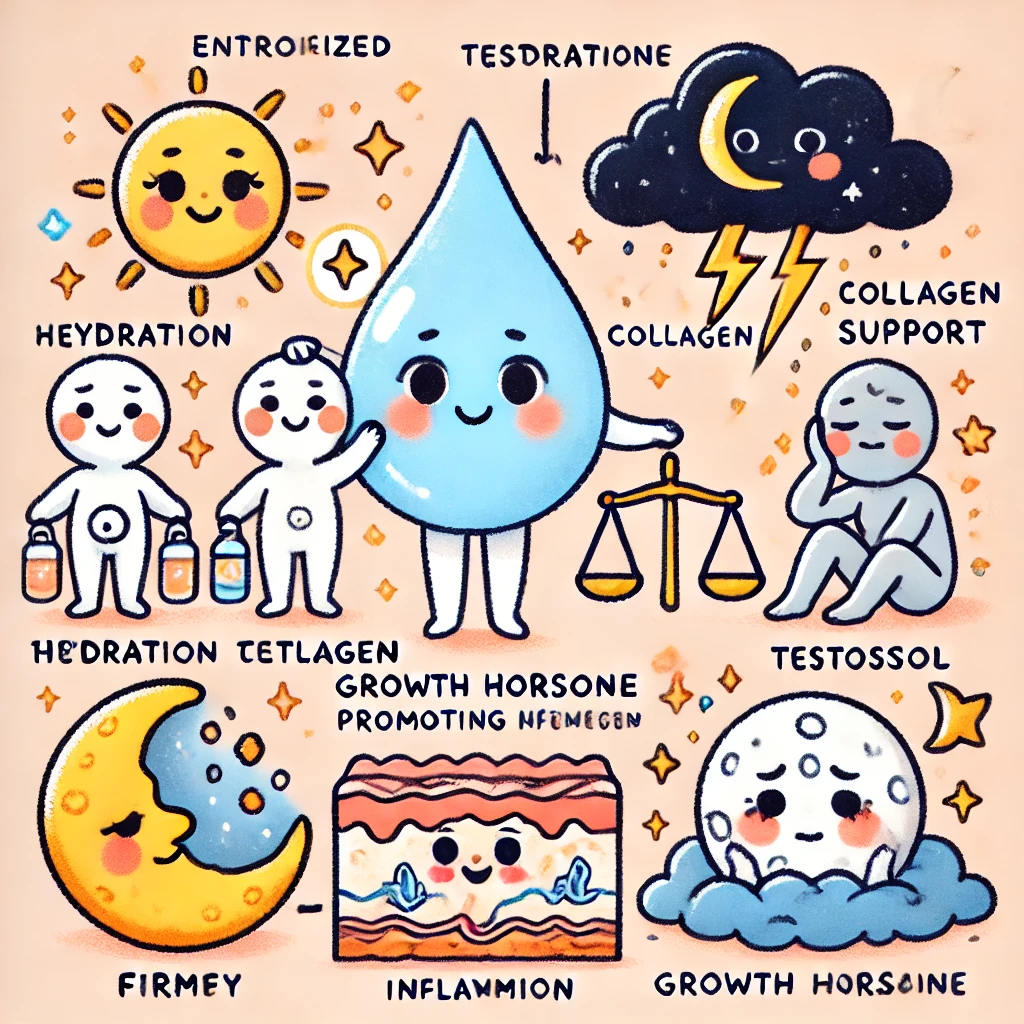 • 成長ホルモン:細胞の新陳代謝を促進し、肌の再生を助けます。睡眠中に多く分泌されるため、質の良い睡眠は美肌づくりの強い味方です。