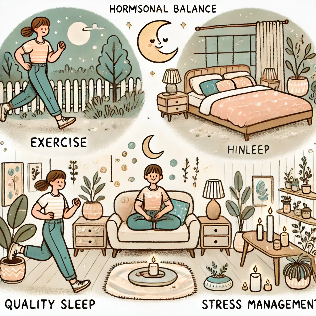 質の良い睡眠も重要です。快適な睡眠環境を整え、就寝前のリラックスルーティンを確立することで、メラトニンの分泌を促し、ホルモンバランスの調整をサポートします。