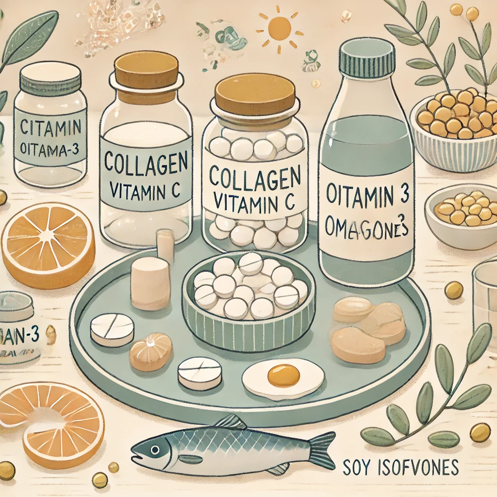 サプリメントの活用も効果的です。イソフラボン、コラーゲン、ヒアルロン酸などのサプリメントが注目されていますが、使用前には医師に相談し、適切な摂取量を守ることが大切です。