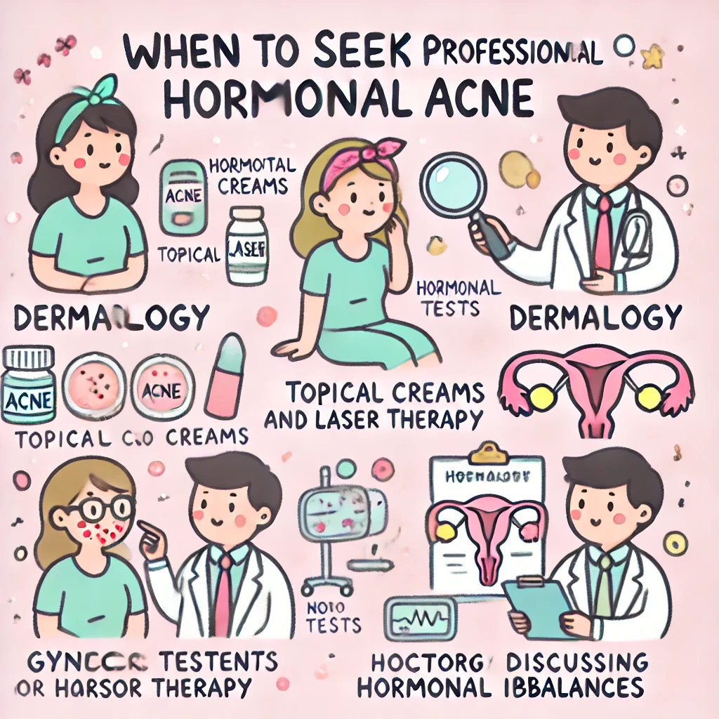 しかし、セルフケアだけでは改善が見られない場合や、症状が重い場合には、適切なタイミングで専門家に相談することが重要です。皮膚科での治療や婦人科でのホルモンチェックを通じて、より専門的なアプローチを受けることができます。