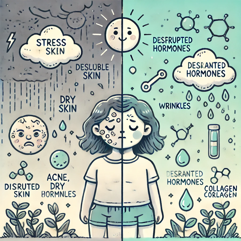 ストレスが肌に与える影響の多くは、ホルモンバランスの乱れを介して起こります。ホルモンは体内のさまざまな機能を調整する重要な物質で、肌の健康にも深く関わっています。