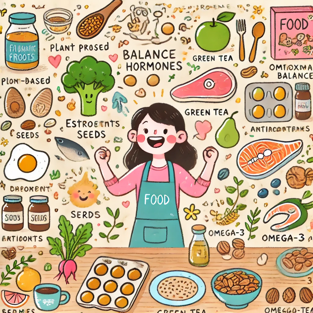 ホルモンバランスを整える食事法として、以下のポイントが重要です。1) 植物性エストロゲンを含む食品(大豆製品、亜麻仁など)を積極的に摂取する。2) ビタミンEが豊富な食品(ナッツ類、アボカドなど)を取り入れる。3) オメガ3脂肪酸を含む食品(青魚、チアシードなど)を定期的に食べる。4) 抗酸化作用のある食品(ベリー類、緑茶、ダークチョコレートなど)を摂取する。5) バランスの良い食事を心がけ、加工食品や精製糖の摂取を控える。