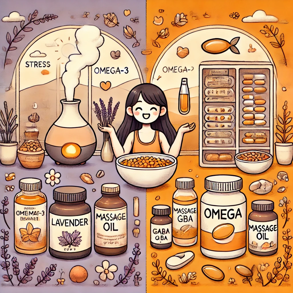 - ストレス対策に効果的な商品の活用(アロマオイル、サプリメントなど)