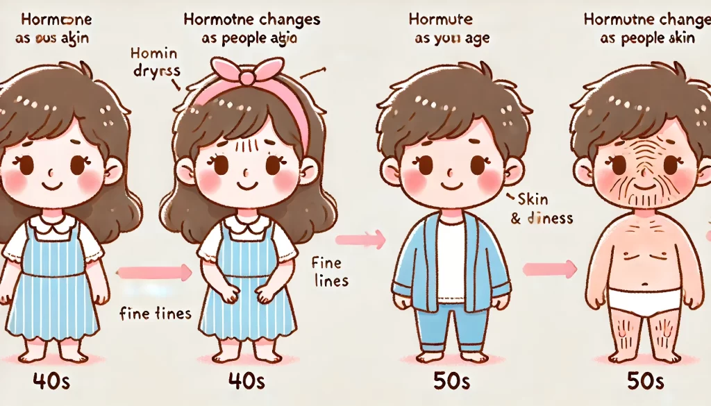 実は、この変化には科学的な理由があります。エストロゲンやプロゲステロンといった女性ホルモン、そしてテストステロンなどの男性ホルモンのバランスが大きく変動する時期に差し掛かるためです。これらのホルモンは、肌の水分保持力やコラーゲン生成、皮脂分泌など、肌の健康に深く関わっています。