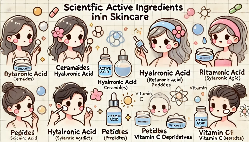 これらの問題に対処するには、適切な成分選びが重要です。特に注目すべきは、レチノール、セラミド、ペプチド、ビタミンC誘導体といった科学的に効果が実証された成分です。これらを正しく組み合わせることで、エイジングケアの効果を最大限に引き出すことができます。
