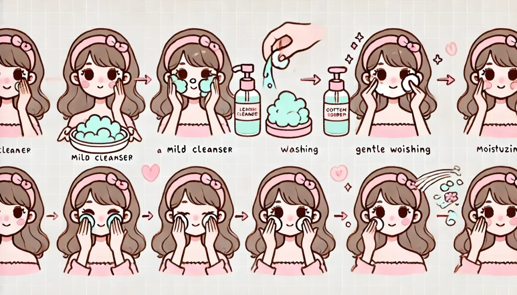 対策の基本は、肌に優しい低刺激のスキンケアを行うことです。洗顔料は肌を傷つけない弱酸性のものを選び、32℃前後のぬるま湯で優しく洗顔します。スキンケア製品は、セラミドやヒアルロン酸などの保湿成分を含む製品を選び、アルコールや強い香料は避けましょう。