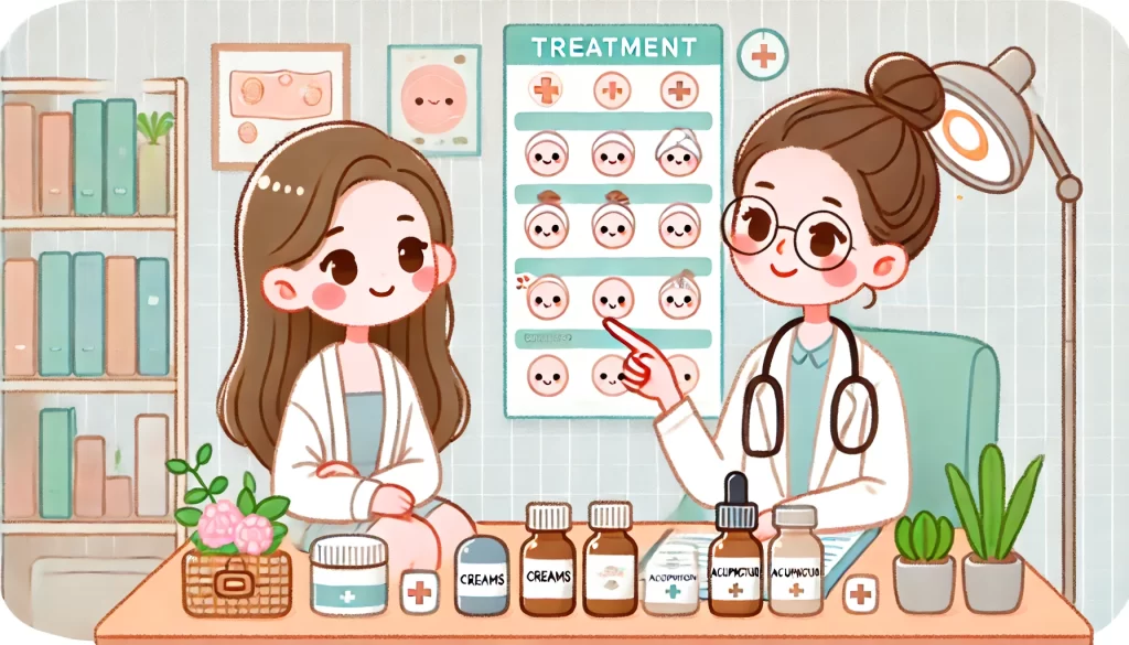 漢方薬の活用も効果的で、体質に合わせて当帰芍薬散や加味逍遙散などを選択できます。症状が重い場合や改善が見られない場合は、皮膚科での治療も検討しましょう。