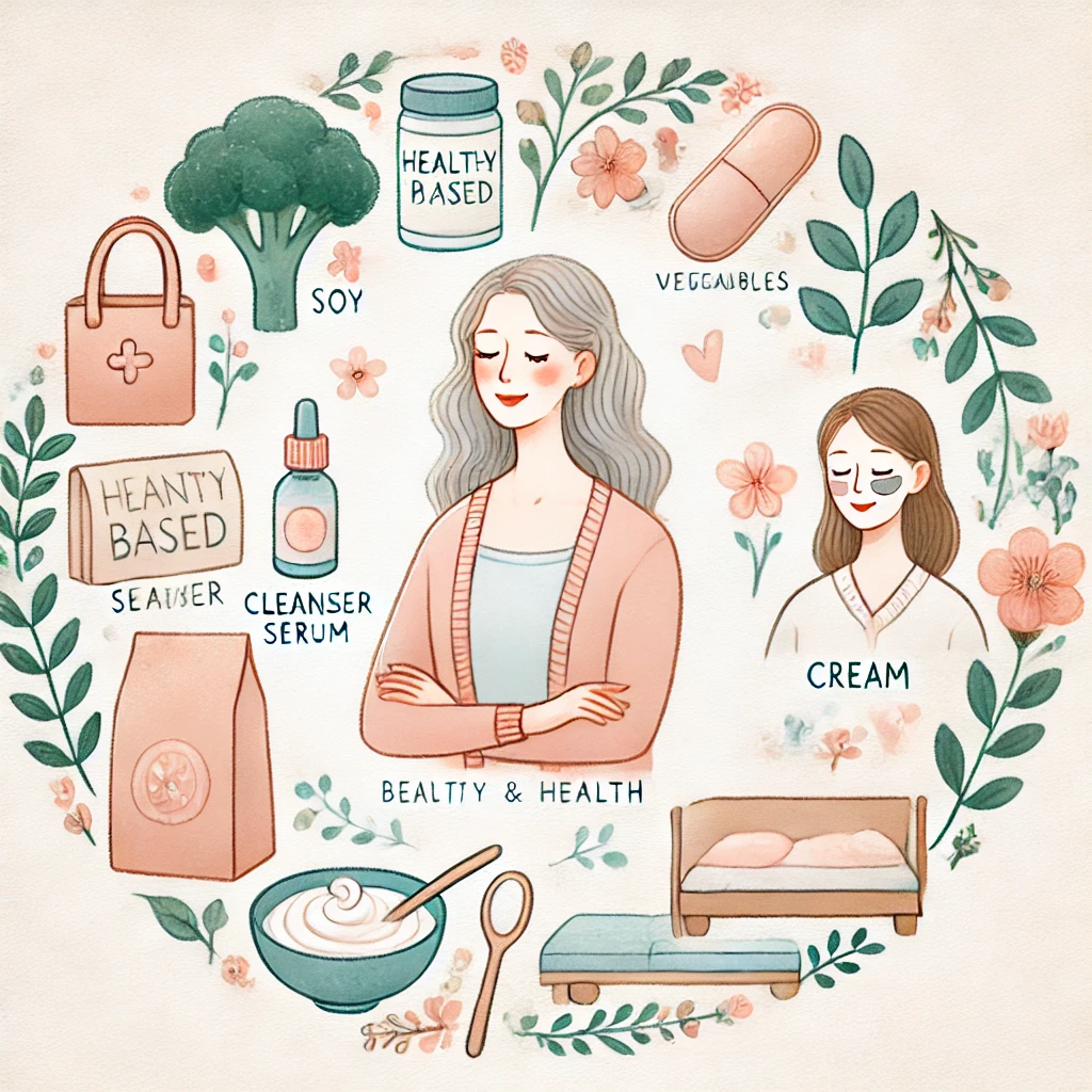 最も重要なのは、内側と外側からの総合的なアプローチです。具体的には、エストロゲンの減少を補うために、大豆イソフラボンなどの植物性エストロゲンを含む食事を摂取すること、そして肌のバリア機能を強化するセラミド配合のスキンケア製品を使用することが効果的です。また、規則正しい生活リズムを保ち、質の良い睡眠を確保することも重要です。
