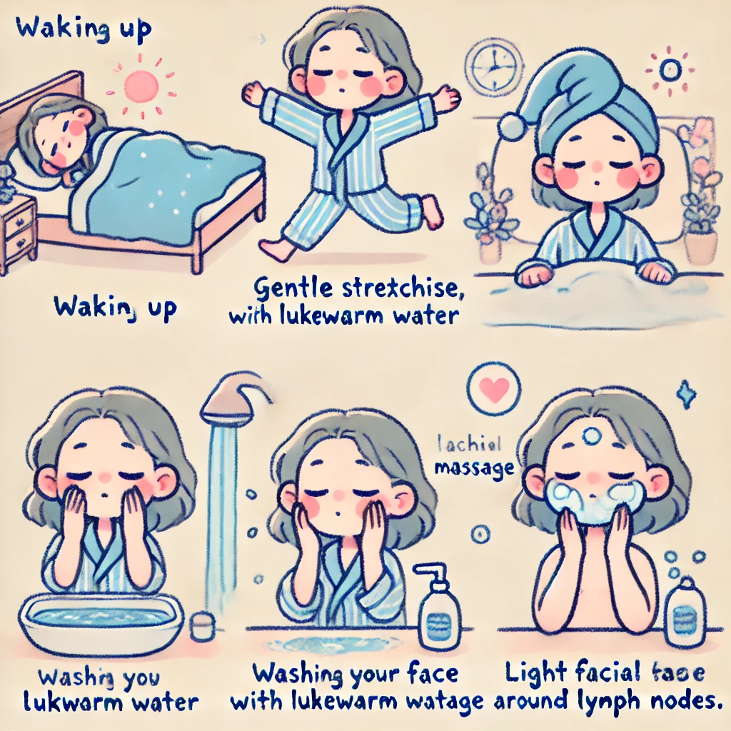 効果的なスキンケアには、朝と夜のルーティンを確立することが重要です。朝のケアでは、肌を優しく目覚めさせ、一日の外部刺激に備えるための保護を行います。夜のケアでは、90分前からの準備を心がけ、入浴、スキンケア、リラクゼーションを段階的に行うことで、夜間の肌再生効率を高めることができます。